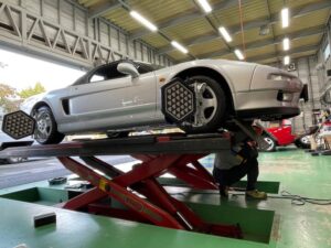 先日、ホンダNSXをご納車させて頂きました。この車両は数年前に仕入れました。外装はリフレッシュ済みで非常に綺麗で、走行距離も1.1万キロと非常に少ない個体でしたが、やはり30年以上の月日の経過には勝てず色々な部品が劣化消耗、また、寧ろ動いていない分の不具合も多数ありました。先ずはコンビネーションメーターのO/Hを行いました。メーター自体のコンデンサーの液漏れにより、警告灯が多数点灯、警告灯が壊れているのか車両自体が壊れているかを、先ずははっきりさせないと修理もリフレッシュも進みません。その他、ブレーキマスターシリンダーやマスターバック、ALB、パワステラック、タイロッドエンド、純正オーディオ、エンジンヘッドカバーパッキン、スプールバルブパッキン、テールレンズパッキン、ブロアファンO/H、エキスパンションバルブ交換、リフレッシュ純正ホイール、純正指定タイヤ、アライメント調整等数えきれない修理と部品交換を時間をかけて行いました。そんな車両を今回ご成約頂き、ご納車させて頂きました。