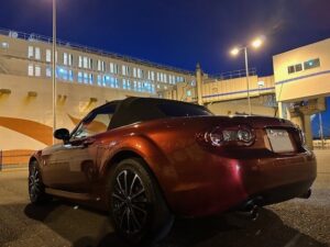 しかし、折角のオープン走行が出来るロードスターです。雪が降る前にお楽しみいただけましたらと思い、自走で大洗から苫小牧までさんふらわあカーフェリーを利用し、1泊2日で札幌のご自宅までご納車させて頂きました。その甲斐あって、雪が降る前のオープンドライブを数日間お楽しみ頂けたようです。