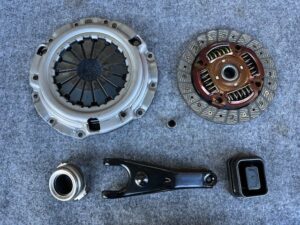 しかし、走行10万キロ以上と多く、劣化ヵ所も多数ある為、クラッチディスク、カバー、レリーズベアリング、レリーズフォーク、パイロットベアリング、クラッチマスター、クラッチレリーズシリンダーや、リンクブーツなど、新品に交換させて頂きました。その他、何時も通りのタイヤをはじめ、エンジンオイルや、ブレーキフルード、アライメント、OBD2スキャンツールてエラーチェックも行い、安心して走行できるようシッカリ整備させて頂きました。
