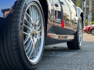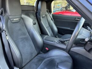 ストーミーブルーの6MT RS RHT で、Rパーケージ(純正レカロシート、フォグ、BBSパーケージ)が装着されている非常に希少な個体です。遠く離れた地でオーナー様に大切にお乗り頂く事と思います。