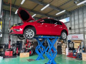 ユーザー様より、赤いゴルフに乗りたいとのご要望を頂き、ご予算や性能等総合的に判断いたしましてゴルフ7.5をチョイスいたしました。今回の個体はワンオーナーで走行も3万キロ、コンディションもまずまずでしたので、何時も通り仕上げればご納得頂けるお車に仕上がると思い仕入れました。