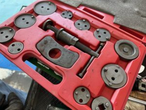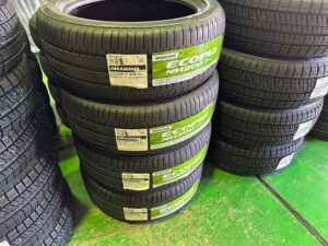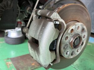 早速、洗車致しまして各キズチェック、その後、リフトでジャッキアップ、下回りチェックとエンジンオイル&フィルター交換いたしました。輸入車はブレーキダストが気になるので、ブレーキパッドも超低ダスト品に前後交換いたしました。最近の車両は、電子パーキング車が多いので、スキャンツールで対応、ついでにすべてのエラーもチェック致しました。当然、ブレーキフルードも交換しエア抜きを行いました。タイヤも新車からの物がそのまま装着されており、劣化が見られましたので、新品ブリジストンのエコピアNH200に交換いたしました。